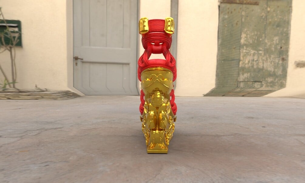 Intricately sculpted gilded gold wedge, depicting majestic dragons in stunning detail.